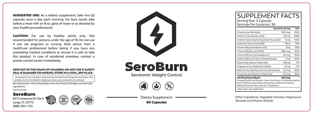 SeroBurn supports weight management, energy, and overall wellness through a combination of natural vitamins, minerals, and extracts.